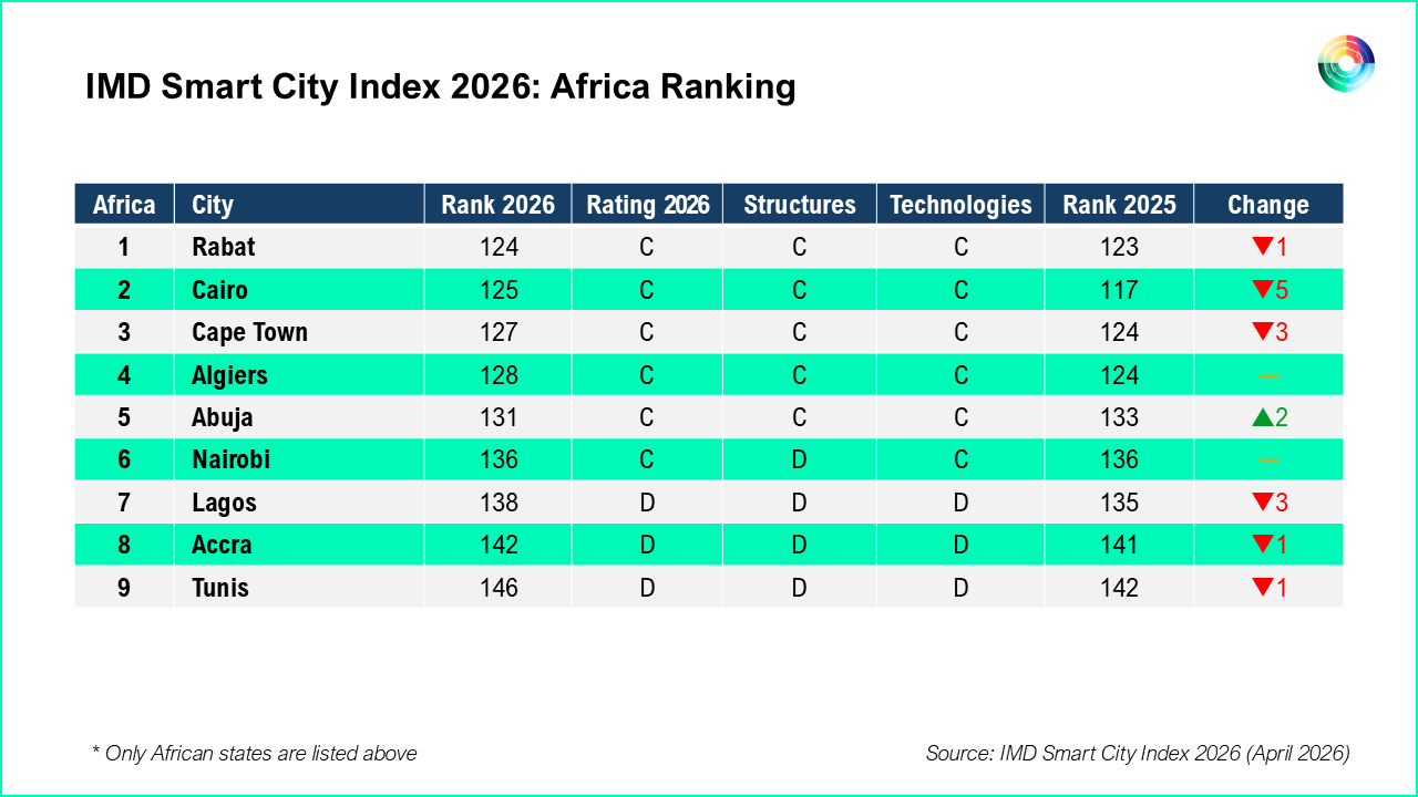 SO WHAT? – The IMD index’s central finding this year, that strong institutions predict smart city performance more reliably than technology investment, is particularly relevant for Africa. Several African cities score reasonably well on technology indicators but lag on governance, transparency, and citizen trust. That structural gap cannot be closed by infrastructure spending alone. For African policymakers, the index is less a technology diagnostic and more a governance scorecard.